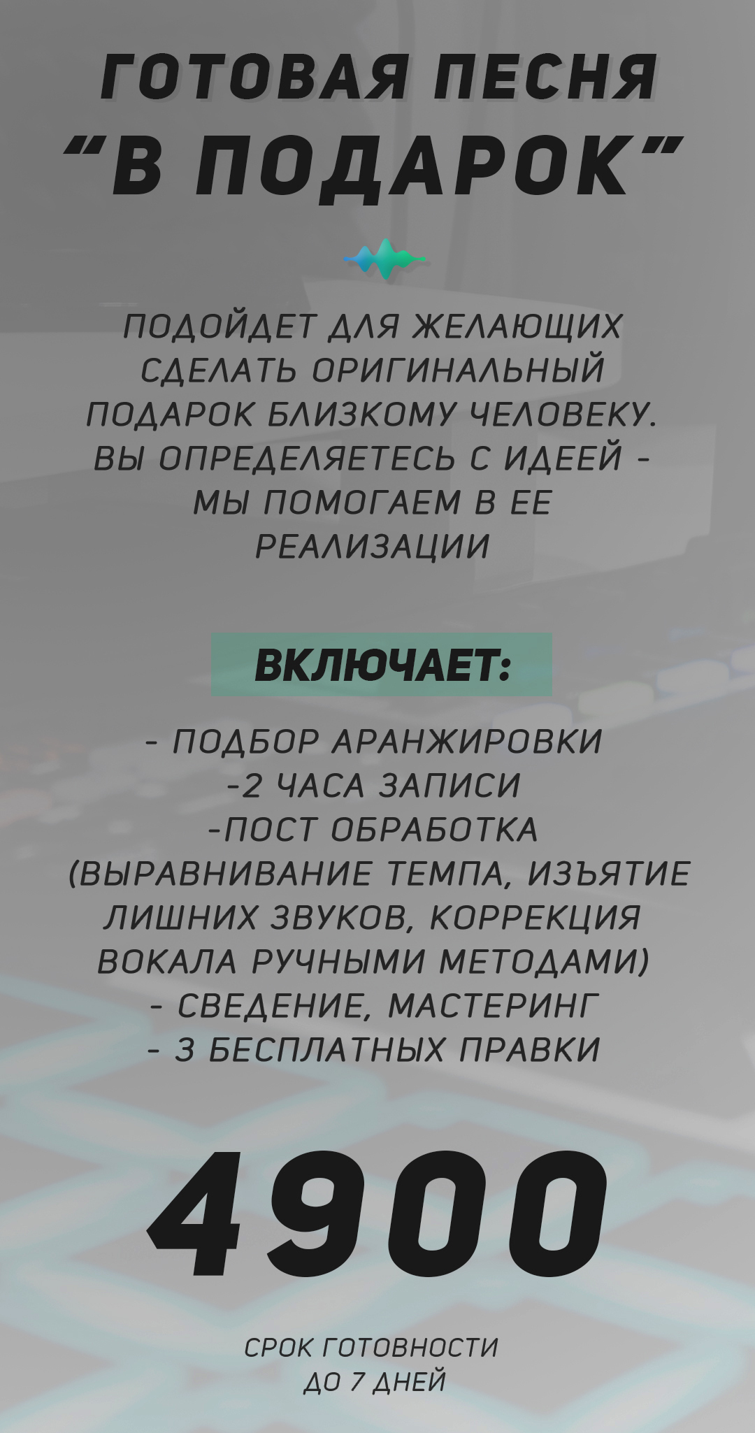 Поможем реализовать все Ваши творческие задумки. Песни, с которым мы работали слушают миллионы.